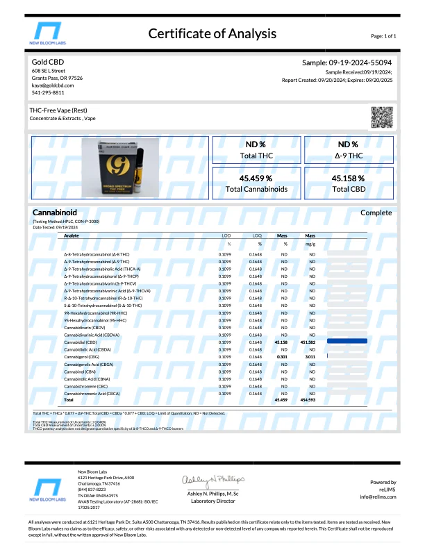 Ingredients: THC-free broad spectrum CBD distillate, MCT oil, and natural terpenes.